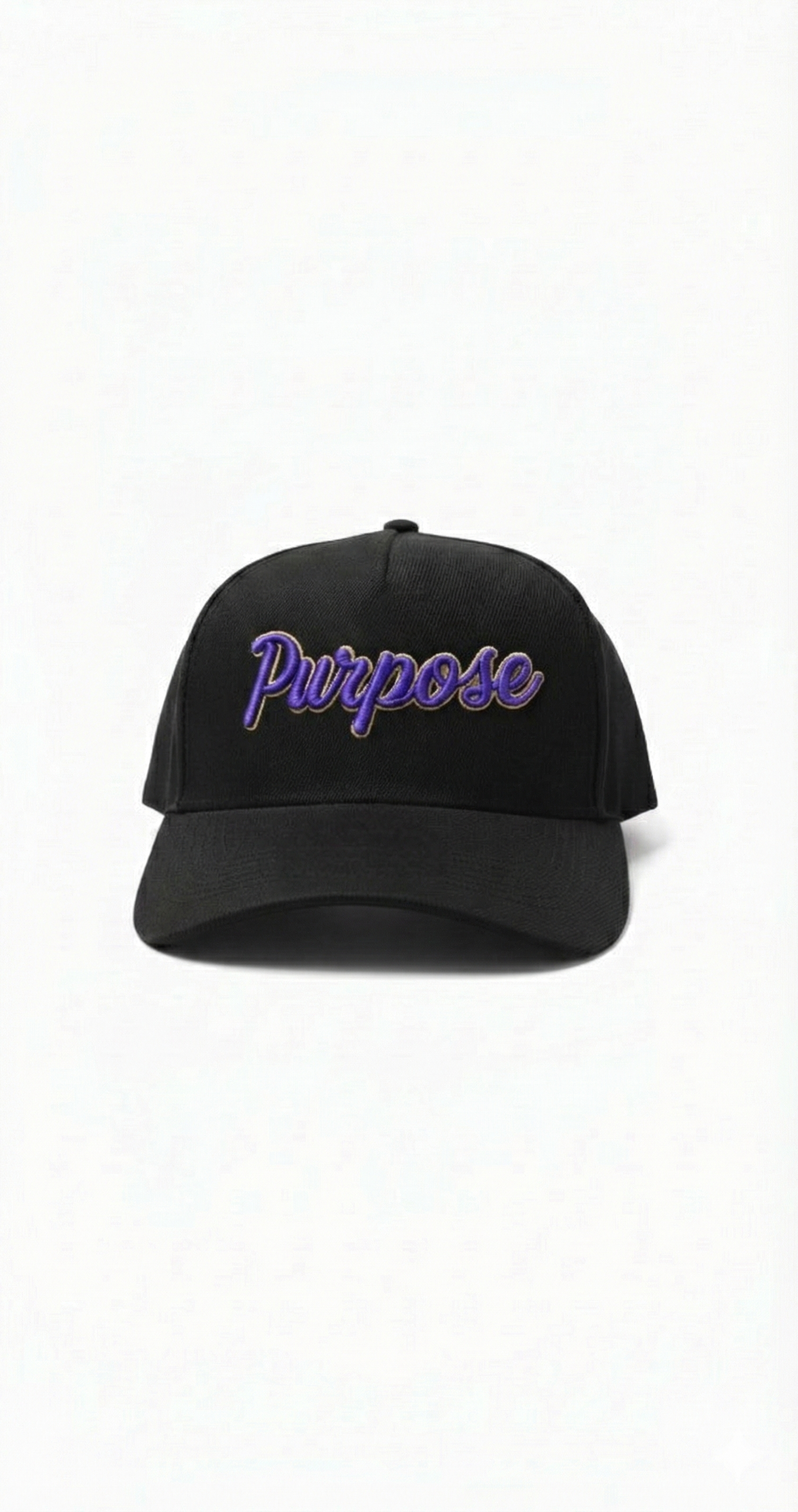 The "Purpose" A-Frame is the counterpart to our Love collection. Featuring a murdered-out black chassis with royal purple 3D script, this piece is a reminder that you are not an accident—you are an assignment.